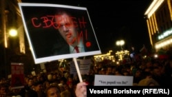 Протестиращите скандираха "Мафията вън", "Прасета на райета", "Оставка", "Кой разпореди това безобразие", "Честни избори", "Тук не е Москва" и др.